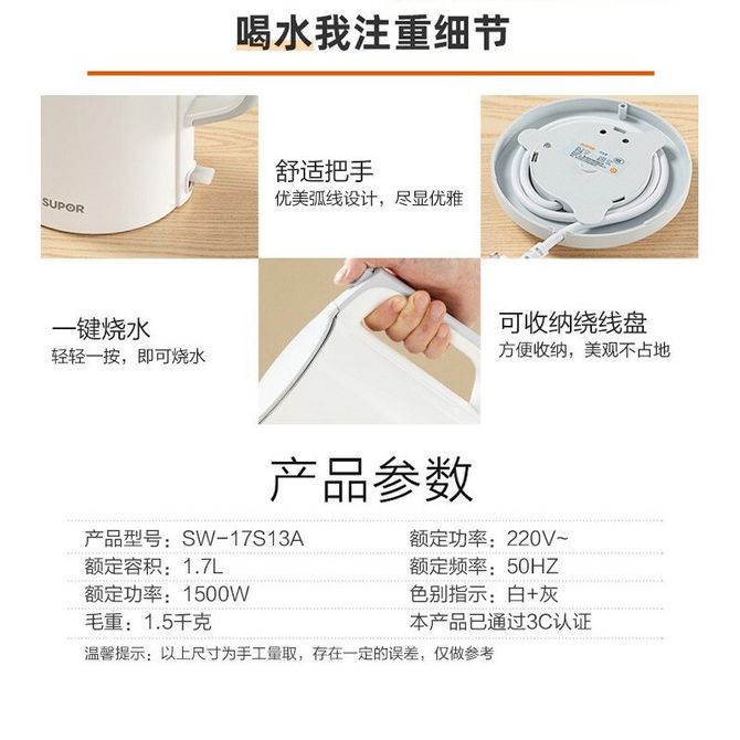 组合销售 产品介绍 产品规格 售后服务 产品咨询 发现好货 苏泊尔(SUPOR)电水壶 1.7L 不锈钢/YL SW-17S13A 5700 里程 志高/Chigo 电水壶烧水壶1.8L大容量电热水壶双层防烫自动断电家用烧水开水壶不锈钢 电水壶 DC-A18F 1900 里程 小熊/Bear 电水壶家用烧水壶 不锈钢自动断电恒温热水壶保温一体电热水壶1.5L容量 3500 里程 小熊/Bear 烧水壶电水壶热水壶电热水壶开水壶304不锈钢内胆双层防烫1.5L大容量ZDH-Q15U8 3000 里程 志高(CHIGO) 电水壶1.8L大容量烧水壶家用热水壶开水壶DC-A18F 1900 里程