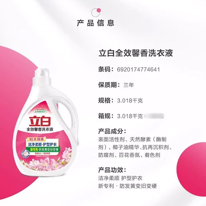 立白 洗衣液3.018kg全效馨香持久留香护衣洁净柔顺去渍天然原料手洗机洗家用 新旧包装随机发,百花馨香、香气怡人 低泡易漂、低粘速溶 兑换价格 2100 里程 会员卡别 终身白金卡 白金卡 金卡 银卡 普通卡 儿童卡 服务 由 广西北部湾网络科技有限公司 发货并提供售后 净含量: 其他容量 清洁剂容量: 其他容量 购买数量: 件 库存件 配送地址: 立即购买 加入购物车 成功添加到购物车 关闭 购物车共有 种商品 总金额为: 组合销售 产品介绍 产品规格 售后服务 产品咨询 发现好货 蓝月亮 深层洁净洗衣液4斤 1kgx1瓶+500gx2补充装 薰衣草香 强效去渍 1500 里程 威露士/Walch La有氧洗洗衣液套装 4斤松木清香(瓶1L+袋500ml*2) 除菌除螨 1900 里程 威露士(Walch) 抗菌有氧洗衣液1L松木清香 1100 里程 威露士 洗衣液除菌机洗手洗家用除螨去污1L*1瓶 1500 里程 蓝月亮 亮白增艳洗衣液2斤 1kg*1瓶 1100 里程
