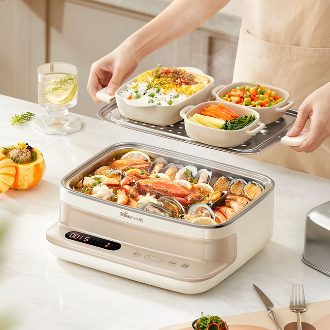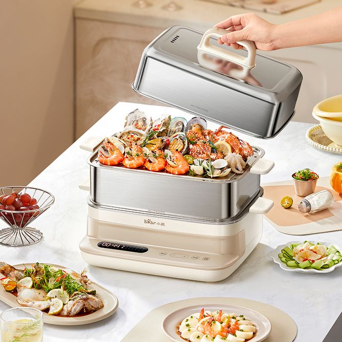 小熊/Bear 电蒸锅炖蒸煮多功能一体自动断电全钢家用16.5L大容量三层电蒸锅DZG-BA7N6 全钢蒸炖 多功能一体锅 兑换价格 16600 里程 会员卡别 终身白金卡 白金卡 金卡 银卡 普通卡 儿童卡 服务 由 酷宝电器专营店 发货并提供售后 颜色: 米黄色 购买数量: 件 库存件 配送地址: 立即购买 加入购物车 成功添加到购物车 关闭 购物车共有 种商品 总金额为: 组合销售 产品介绍 产品规格 售后服务 产品咨询 发现好货 苏泊尔(SUPOR)空气炸锅 家用多功能4.2L大容量 烤箱薯条机 无油烟电炸锅 大功率 无油低脂煎炸锅KJ42D811 6500 里程 苏泊尔(SUPOR)空气炸锅家用3L大容量电炸锅 蒸汽嫩炸多功能无油烟煎炸薯条机烤箱KD30DQ815 21700 里程 美的/Midea 空气炸锅 可视 不用翻面 金属内腔 蒸汽嫩炸 三档烘烤风力 5L KZC5089 10700 里程 小熊/Bear 空气炸锅 4D漩烤不用翻面 全自动 5L实用大容量 可视 蒸汽嫩炸 控油脱脂 炸烤箱一体机 9100 里程 小熊/Bear 家用多功能锅电炒锅电火锅电煮锅电锅分体式C60J5 6500 里程