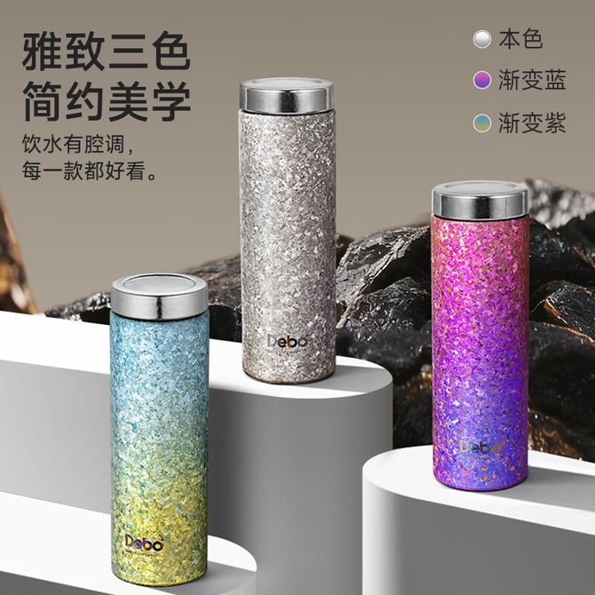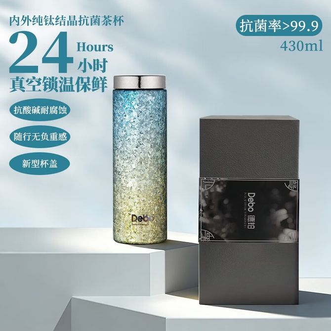 Debo 德铂钛杯99%纯钛保温杯430ml大容量 杯盖即茶杯 创新茶隔 真空锁温 天然保鲜 礼盒包装 保温保冷 轻量便携 耐酸碱 兑换价格 11300 里程 会员卡别 终身白金卡 白金卡 金卡 银卡 普通卡 儿童卡 服务 由 人人余厨具专营店 发货并提供售后 颜色: 浅蓝色 浅紫色 银色 购买数量: 件 库存件 配送地址: 立即购买 加入购物车 成功添加到购物车 关闭 购物车共有 种商品 总金额为: 组合销售 产品介绍 产品规格 售后服务 产品咨询 发现好货 爱奇屋aichiw思悦保温杯AI-D97 1500 里程 希乐(cille) 领先保温杯XB-22172女生316水杯儿童上学专用大容量杯子冬季男款学生水壶500ml 2400 里程 爱奇屋 保温杯随行口袋杯 高颜值清新小巧水杯子280ml AI-D158 1100 里程 德铂(Debo) 480ml托马斯弹跳盖304不锈钢保温杯DEP-719 1500 里程 德铂Debo保温杯304不锈钢内胆双层茶杯白色DEP-719 1400 里程