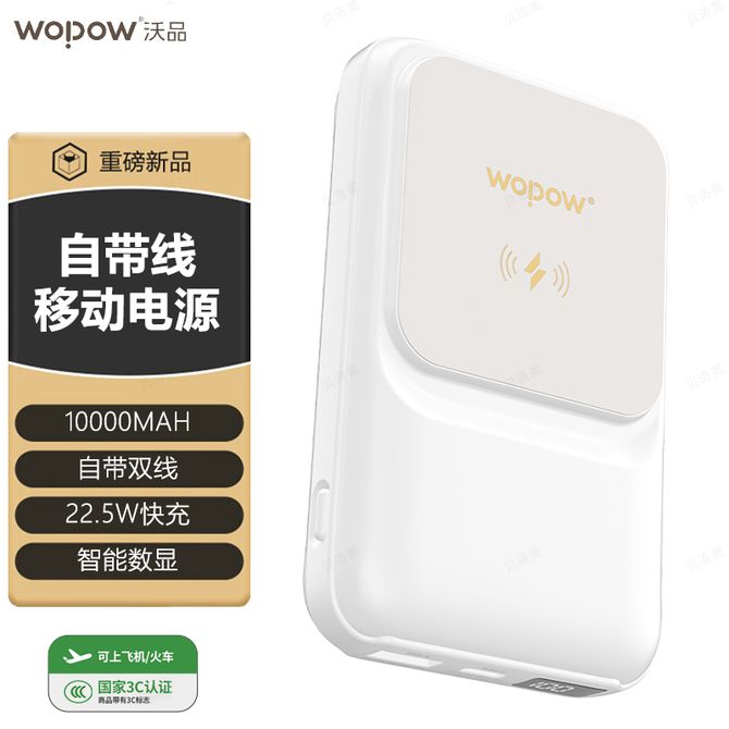 沃品/WOPOW 【国家3C认证】10000mAh充电宝自带双线22.5w超级快充迷你便携移动电源 3C认证 可上飞机 机身有3C标识 兑换价格 6100 里程 会员卡别 终身白金卡 白金卡 金卡 银卡 普通卡 儿童卡 服务 由 贝洛美智能科技精品馆 发货并提供售后 电池容量: 8001mAh-10000mAh 颜色: 其他 购买数量: 件 库存件 配送地址: 立即购买 加入购物车 成功添加到购物车 关闭 购物车共有 种商品 总金额为: