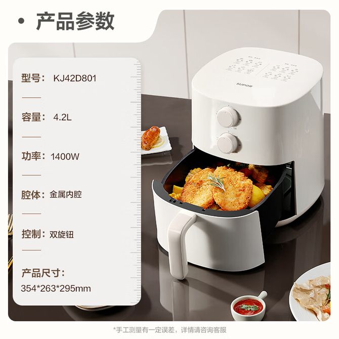 苏泊尔(SUPOR) 空气炸锅家用大容量金属内腔蒸汽嫩炸电炸锅4.2升双旋钮控温调时煎炸锅轻音低脂智能炸锅 KJ42D801 4.2L 4.2L大容量全家享|双旋钮便捷定时调温 兑换价格 9600 里程 会员卡别 终身白金卡 白金卡 金卡 银卡 普通卡 儿童卡 服务 由 优米酷家电生活馆 发货并提供售后 颜色: 其他 购买数量: 件 库存件 配送地址: 立即购买 加入购物车 成功添加到购物车 关闭 购物车共有 种商品 总金额为: