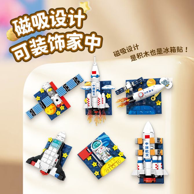 森宝积木/SEMBO BLOCK 航天磁吸冰箱贴(1套6款)磁吸拼装玩具家居装饰摆件男孩生日礼物610031 超萌火箭队积木冰箱贴,航天文创,正版授权 兑换价格 2400 里程 会员卡别 终身白金卡 白金卡 金卡 银卡 普通卡 儿童卡 服务 由 嘉顺佳美生活馆 发货并提供售后 颜色: 其他 购买数量: 件 库存件 配送地址: 立即购买 加入购物车 成功添加到购物车 关闭 购物车共有 种商品 总金额为:
