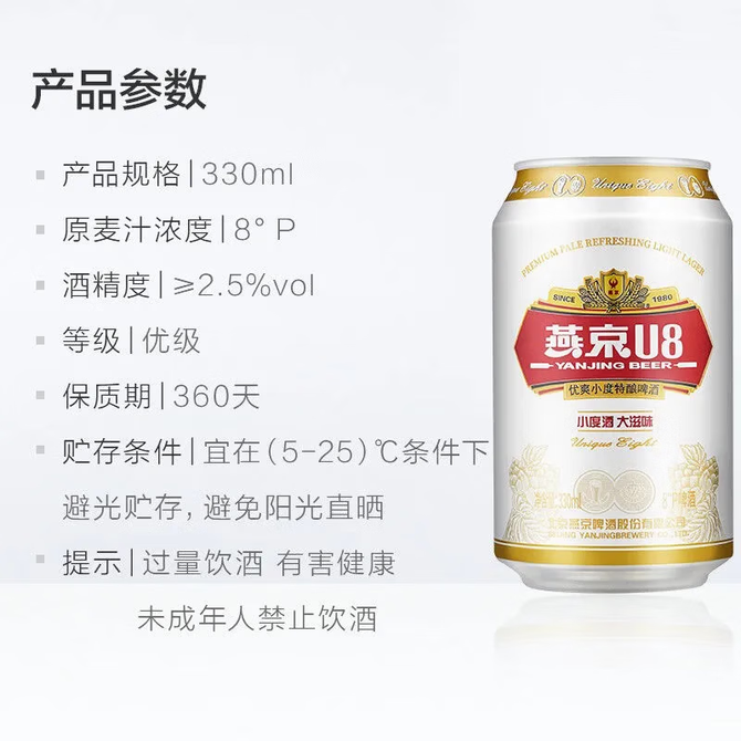 燕京 U8啤酒小度酒330ml*24罐整箱装 U8啤酒小度酒330ml*24罐整箱装 兑换价格 3900 里程 会员卡别 终身白金卡 白金卡 金卡 银卡 普通卡 未满18岁禁止饮酒,过量饮酒有害健康 服务 由 天天乐选食品商城 发货并提供售后 规格: 罐装 购买数量: 件 库存件 配送地址: 立即购买 加入购物车 成功添加到购物车 关闭 购物车共有 种商品 总金额为: 组合销售 产品介绍 产品规格 售后服务 产品咨询 发现好货 青岛啤酒 金质小棕金啤酒 296ml*24瓶 优选大麦 传统酿造 6100 里程 喜力/Heineken 经典罐装500ml*12听 整箱装 经典风味啤酒 全麦酿造 3300 里程 青岛啤酒 金质小棕金296ml*6瓶 优选大麦 传统酿造 2200 里程 青岛啤酒 白啤1903精酿啤酒11度全麦白啤 500ml*12罐 整箱装 5200 里程 青岛啤酒 奥古特罐啤 330ml*24听 整箱装 7800 里程