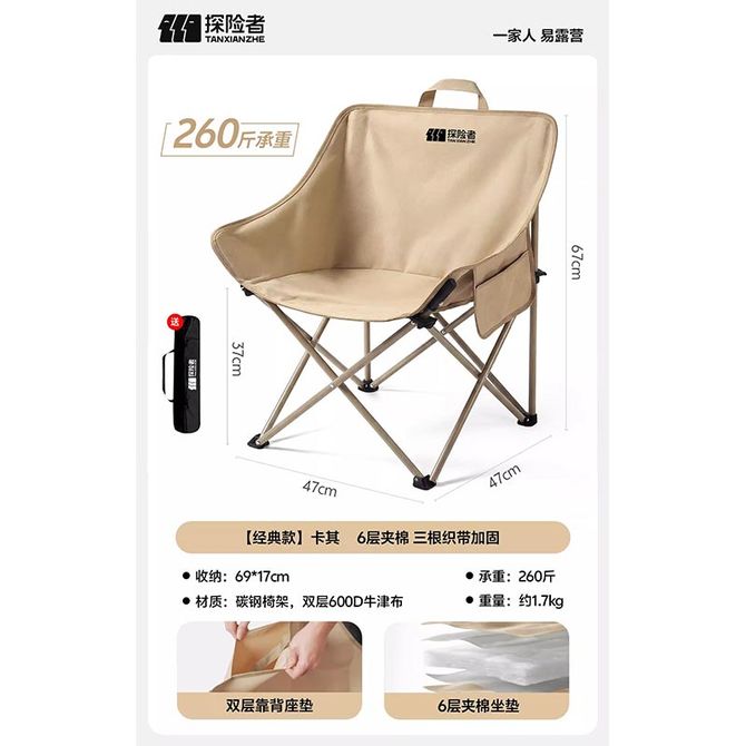 探险者(TAN XIAN ZHE) 户外折叠椅月亮椅单人靠背QQ椅 经典款 卡其色47*47*67cm 探险者户外月亮椅 卡其色 经典款47*47*67cm 兑换价格 2400 里程 会员卡别 终身白金卡 白金卡 金卡 银卡 普通卡 儿童卡 服务 由 亿宇安百户外专营店 发货并提供售后 颜色: 卡其色 购买数量: 件 库存件 配送地址: 立即购买 加入购物车 成功添加到购物车 关闭 购物车共有 种商品 总金额为: