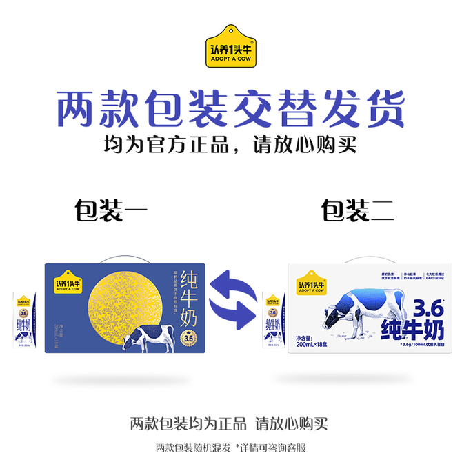 认养一头牛ADOPT A COW 全脂纯牛奶200ml*18盒3.6g蛋白高钙牛奶 CN 白然清甜 口感丝滑 兑换价格 3100 里程 会员卡别 终身白金卡 白金卡 金卡 银卡 普通卡 儿童卡 服务 由 罗迪诺食品专营店 发货并提供售后 规格: 礼盒 购买数量: 件 库存件 配送地址: 立即购买 加入购物车 成功添加到购物车 关闭 购物车共有 种商品 总金额为: 组合销售 产品介绍 产品规格 售后服务 产品咨询 发现好货 蒙牛 特仑苏纯牛奶苗条装250ml×12盒 2900 里程 三元 经典小方白全脂纯牛奶250ml*24盒牛奶 整箱 3400 里程 伊利金典纯牛奶250ml*12盒整箱 2200 里程 伊利 金典纯牛奶整箱 250ml*12盒 3.6g乳蛋白 原生高钙 礼盒装 1800 里程 特仑苏 新日期纯牛奶250ml*12盒 3.6g乳蛋白 礼盒装 京东/顺丰发货 2400 里程