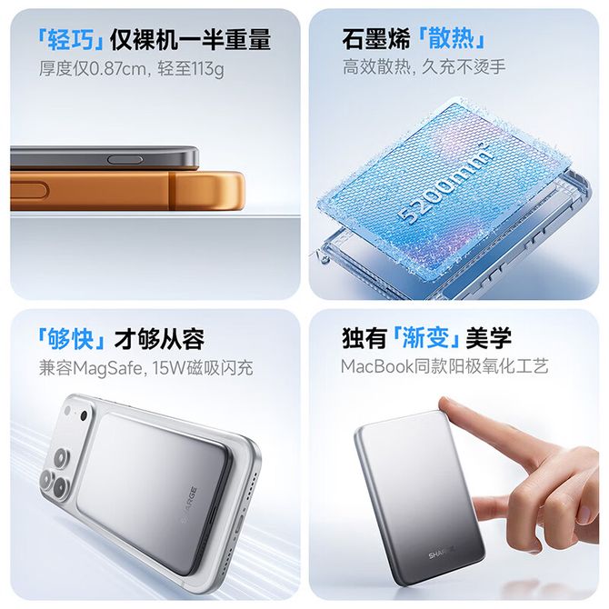 闪极/SHARGE M6 随行磁吸移动电源常规版5000mAh M105A2Y 15W磁吸闪充 超薄机身 渐变金属工艺 兑换价格 8700 里程 会员卡别 终身白金卡 白金卡 金卡 银卡 普通卡 儿童卡 服务 由 信通智汇商城 发货并提供售后 电池容量: 3001mAh-5000mAh 颜色: 黑色 银色 粉色 购买数量: 件 库存件 配送地址: 立即购买 加入购物车 成功添加到购物车 关闭 购物车共有 种商品 总金额为: 组合销售 产品介绍 产品规格 售后服务 产品咨询 发现好货 ZNNCO 充电宝20000毫安时超薄小巧迷你自带线大容量快充移动电源便携苹果华为小米2万mAh手机 4200 里程 雷摄 T68S【3C认证可上飞机】充电宝10000毫安 移动电源 22.5W快充丨1万毫安丨多口输出 1700 里程 睿量/Remax 磁吸无线充电宝 Magsafe快充 5000mAh超薄小巧便携移动电源 手机背夹迷你移动电源 适用于苹果华为小米手机 RPP-107 4600 里程 纽曼(Newmine) 自带四线充电宝 3C认证 LED智能数显10000毫安移动电源 AL03 经典黑 3000 里程 雷摄 【3C认证】LS-YDZJ01 10000毫安 四线多功能移动电源 黑色 2000 里程