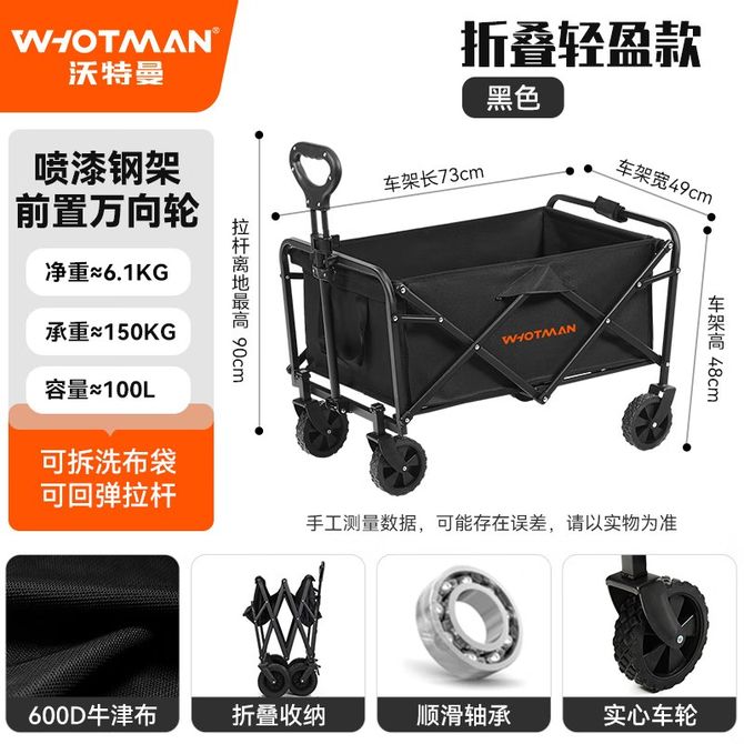 沃特曼/Whotman 露营车推车户外营地折叠拖车野餐野营桌板手拉车 黑色 沃特曼 5吋宅轮平折营地车 尺寸:73x49x90cm 材质:牛津布+碳素钢 兑换价格 7400 里程 会员卡别 终身白金卡 白金卡 金卡 银卡 普通卡 儿童卡 服务 由 亿宇安百户外专营店 发货并提供售后 颜色: 黑色 购买数量: 件 库存件 配送地址: 立即购买 加入购物车 成功添加到购物车 关闭 购物车共有 种商品 总金额为: