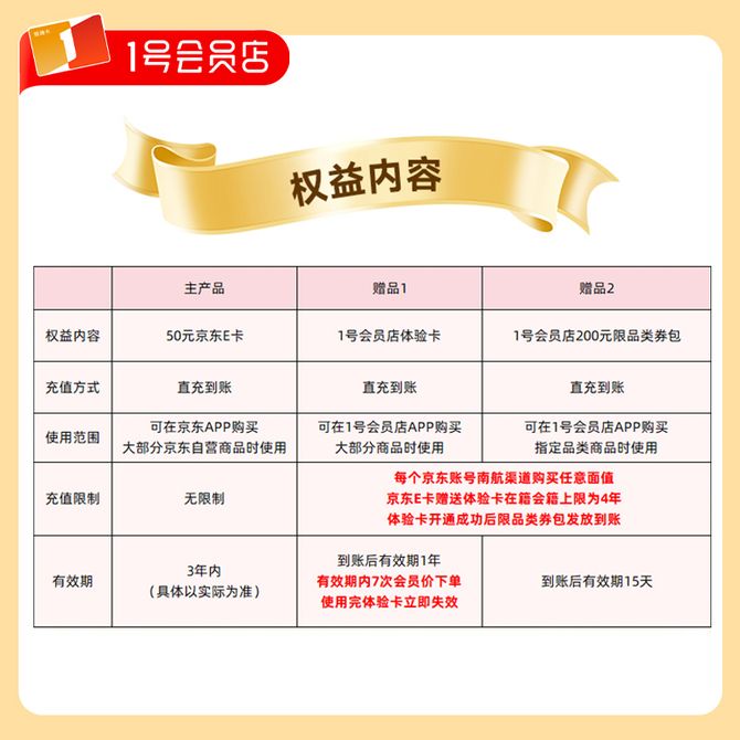 1号会员店 200元品类券包赠1号店会员体验卡+50元京东E卡 短链兑换 复制收到的链接到浏览器打开,输入京东账号绑定的手机号充值 兑换价格 2900 里程 会员卡别 终身白金卡 白金卡 金卡 银卡 普通卡 儿童卡 服务 由 道春生活服务专营店 发货并提供售后 卡券规格: 套票 购买数量: 件 库存件 立即购买 成功添加到购物车 关闭 购物车共有 种商品 总金额为: