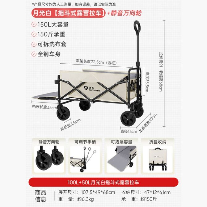清系 150L拖斗式5寸轮拓展营地车 展开尺寸约107.5*49*68cm、折叠尺寸约47*12*61cm、承重约150斤 兑换价格 8700 里程 会员卡别 终身白金卡 白金卡 金卡 银卡 普通卡 儿童卡 服务 由 至恩户外运动专营店 发货并提供售后 颜色: 米白色 购买数量: 件 库存件 配送地址: 立即购买 加入购物车 成功添加到购物车 关闭 购物车共有 种商品 总金额为: