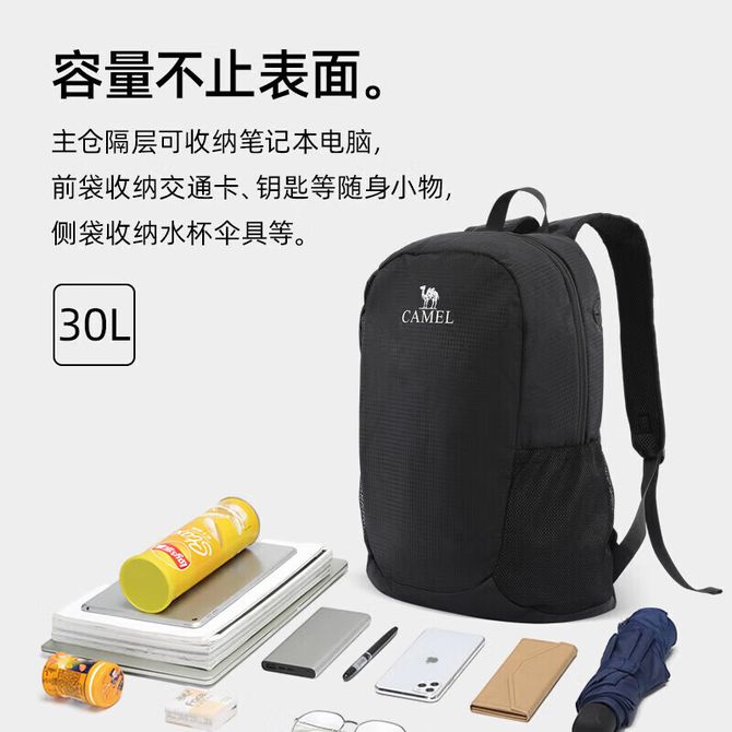 骆驼/Camel 萌趣双肩包徒步旅游休闲学生登山旅行背包书包新款男女 573C875035,黑色 尺寸:约46x30x20CM 3、重量:约260G,容量:30L; 兑换价格 4800 里程 会员卡别 终身白金卡 白金卡 金卡 银卡 普通卡 儿童卡 服务 由 劲芳体育生活馆 发货并提供售后 颜色: 黑色 购买数量: 件 库存件 配送地址: 立即购买 加入购物车 成功添加到购物车 关闭 购物车共有 种商品 总金额为: 组合销售 产品介绍 产品规格 售后服务 产品咨询 发现好货 匹克/PEAK 防泼水男女户外轻便旅行双肩运动登山背包10L YW41102 5400 里程 TFO 北美系列户外登山包30L9202403F00 黑色 35L 17400 里程 骆驼/Camel 户外双肩包男女徒步旅行运动登山包大容量轻便背包 3FI101C 【赠送登山杖1根】 13000 里程 TFO 登山户外背包 男女大容量轻便耐磨电脑仓 旅行骑行野营双肩包 蓝色 40L 9600 里程 驿客/EASTSKY 时尚户外通勤背包(黑色/灰色两色可选)EKB-8007 2200 里程