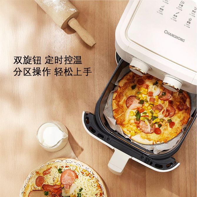 长虹(CHANGHONG) 空气炸锅5L大容量双旋钮定时控温家用多功能轻油空气炸电炸锅空气炸篮可视化锅体360°循环烤 5L家庭大容量,12大建议菜单,双旋钮定时控温,可视化锅体,360°循环烤 兑换价格 10400 里程 会员卡别 终身白金卡 白金卡 金卡 银卡 普通卡 儿童卡 服务 由 广西自贸区京通桂达科技发展有限公司 发货并提供售后 颜色: 其他 购买数量: 件 库存件 配送地址: 立即购买 加入购物车 成功添加到购物车 关闭 购物车共有 种商品 总金额为: 组合销售 产品介绍 产品规格 售后服务 产品咨询 发现好货 苏泊尔(SUPOR)空气炸锅 家用多功能4.2L大容量 烤箱薯条机 无油烟电炸锅 大功率 无油低脂煎炸锅KJ42D811 6500 里程 苏泊尔(SUPOR)空气炸锅家用3L大容量电炸锅 蒸汽嫩炸多功能无油烟煎炸薯条机烤箱KD30DQ815 21700 里程 美的/Midea 空气炸锅 家用5升可视炸锅金属内腔体微蒸汽多功能智能双旋控温电炸锅 KZE5089 10900 里程 美的/Midea 空气炸锅 可视 不用翻面 金属内腔 蒸汽嫩炸 三档烘烤风力 5L KZC5089 10700 里程 美的/Midea 电火锅 电煮锅 大功率速沸多用途多功能锅一体 旋钮式无极火力调节 6.5L 5200 里程