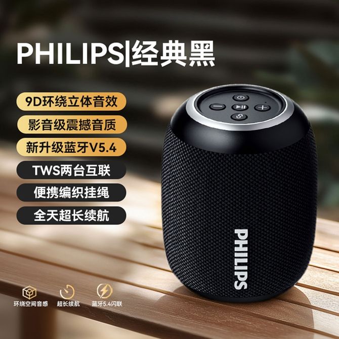 飞利浦/Philips 蓝牙音箱户外音响低音炮迷你大音量车载骑行重低音 新升级蓝牙V5.4 TWS两台互联 兑换价格 4300 里程 会员卡别 终身白金卡 白金卡 金卡 银卡 普通卡 儿童卡 服务 由 贝洛美智能科技精品馆 发货并提供售后 颜色: 黑色 购买数量: 件 库存件 配送地址: 立即购买 加入购物车 成功添加到购物车 关闭 购物车共有 种商品 总金额为:
