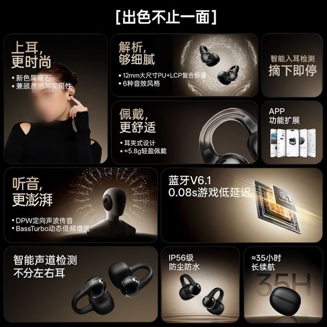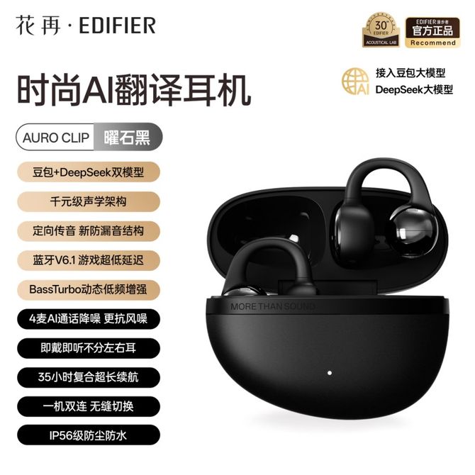 漫步者/EDIFIER 耳夹式蓝牙耳机 轻奢电镀工艺开放式HiFi音质耳麦 AI双模型语言翻译无线耳塞Auro Clip 最新蓝牙6.1 轻奢电镀工艺流光溢彩,开放不夹久戴不压,大口径复合振膜HiFi音质,蓝牙6.1,AI实时翻译 兑换价格 16800 里程 会员卡别 终身白金卡 白金卡 金卡 银卡 普通卡 儿童卡 服务 由 智科精品 发货并提供售后 颜色: 黑色 金色 银色 紫色 购买数量: 件 库存件 配送地址: 立即购买 加入购物车 成功添加到购物车 关闭 购物车共有 种商品 总金额为: