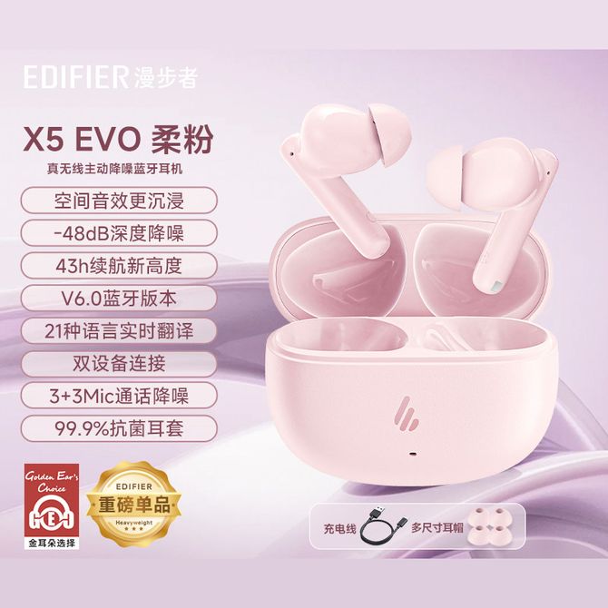 漫步者/EDIFIER 入耳式主动降噪蓝牙耳机 空间音效HiFi音质耳麦 同声传译长续航音乐耳机X5-Evo 深度混合降噪,双复合强磁动圈,空间音效HiFi音质,同声传译多语种翻译,6唛抗风噪通话 兑换价格 8800 里程 会员卡别 终身白金卡 白金卡 金卡 银卡 普通卡 儿童卡 服务 由 智科精品 发货并提供售后 颜色: 白色 黑色 蓝色 粉色 购买数量: 件 库存件 配送地址: 立即购买 加入购物车 成功添加到购物车 关闭 购物车共有 种商品 总金额为: