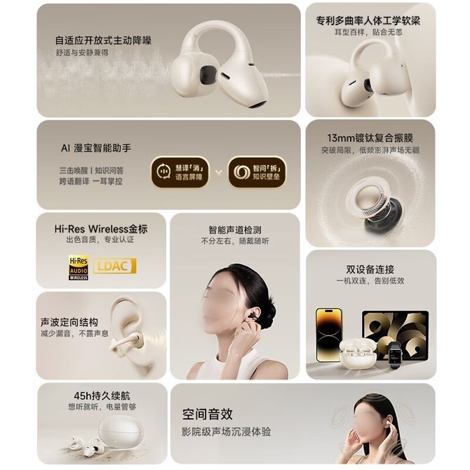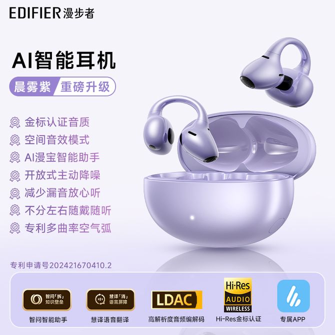 漫步者/EDIFIER 耳夹开放式降噪蓝牙耳机 大动圈空间音效HiFi音质智能耳夹Lolli Clip AI 同声传译音乐耳麦 自适应开放式主动降噪,AI智能助手,大镀钛动圈,金标认证,空间音效,蓝牙6.1,持久续航 兑换价格 23000 里程 会员卡别 终身白金卡 白金卡 金卡 银卡 普通卡 儿童卡 服务 由 智科精品 发货并提供售后 颜色: 黑色 金色 紫色 购买数量: 件 库存件 配送地址: 立即购买 加入购物车 成功添加到购物车 关闭 购物车共有 种商品 总金额为: 组合销售 产品介绍 产品规格 售后服务 产品咨询 发现好货 联想/Lenovo EA420 耳夹式 无线运动蓝牙耳机 2600 里程 纽曼 耳夹式蓝牙耳机无线开放式运动防水跑步耳机LY100 5500 里程 飞利浦/Philips 蓝牙耳机 TAT1199-米白色 真无线半入耳式运动跑步迷你音乐降噪游戏低延迟长续航通用华为苹果 3500 里程 飞利浦(PHILIPS) TAT2708 开放式真无线不入耳挂耳式耳机健身运动跑步 5500 里程 魔声 无线蓝牙耳机不入耳挂耳耳夹开放式HIFI音质舒适佩戴运动健身跑步防水长续航 AC330黑色 4400 里程