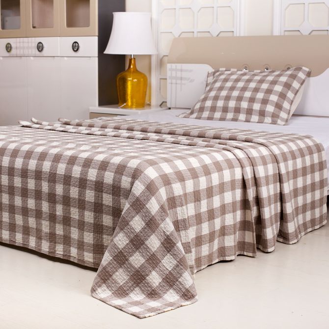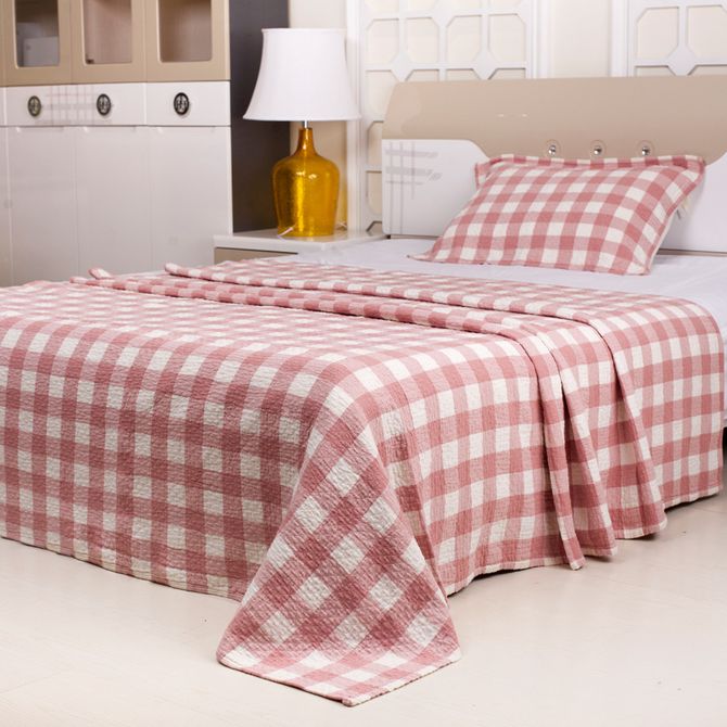 康乐屋 毛巾被 纯棉小方格皱被 单人毛巾毯 午睡毯 空调毯