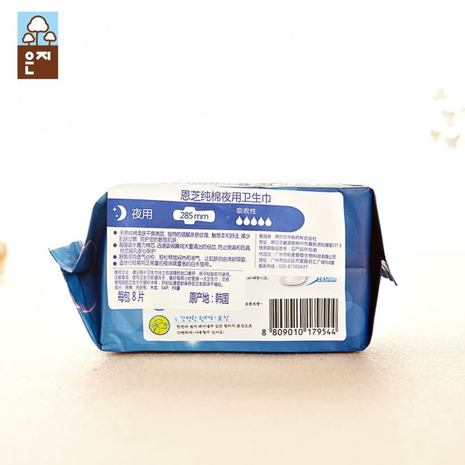 恩芝卫生巾 韩国原装进口 纯棉夜用285mm 8片