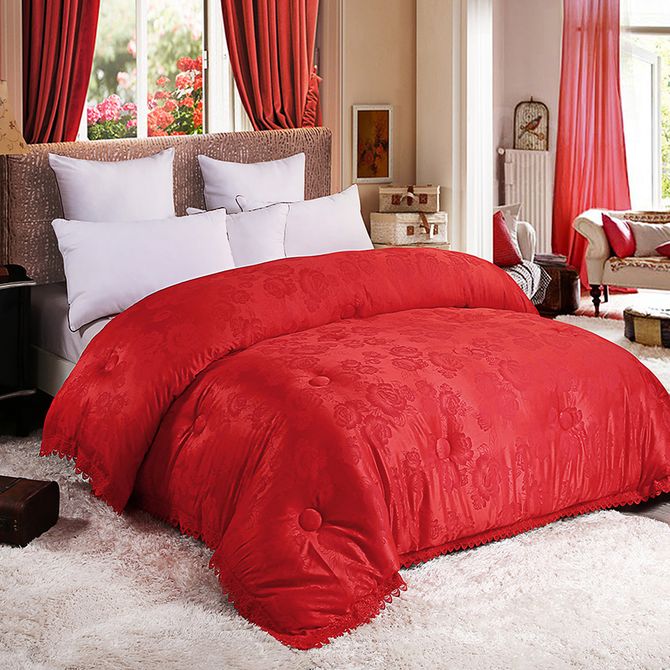 洁帛 莫代尔提花面料婚庆被子被芯 大红冬被喜被新婚床品 保暖被双人被